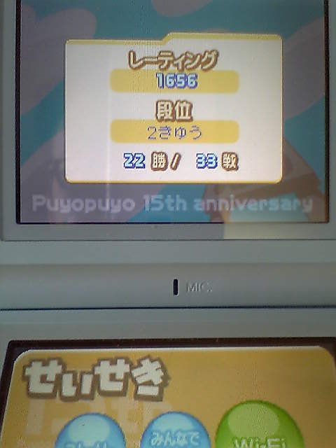 さて。 男として産まれたから、というわけではないですが、人間何かしら一番とゆーかてっぺんに憧れるもんです。 そりゃもちろん、世の中で一番になるなんてのはどのような分野にしろ極めて難しいと言わざるを得ないのですが。 それでも、常に自分を高めたい。 昨日よりも一瞬前よりも一歩でも前に進んで行きたいと思うのは間違いではないと思うのです。 ……まぁ、いつものごとくこんな書き出しからゲームに繋げていくのですが。 強引とか思っても口に出したりしないようにw で、今週買ったゲーム。 BeatmaniaIIDX 12 HAPPY SKYと、もうひとつ。 「ぷよぷよ! PUYOPUYO 15th anniversary」 ニンテンドーDS版です。 言うまでもなく、あのぷよぷよです。 思えば初めて買ったスーパーファミコンのソフトもぷよぷよでした。 僕にとって、とても思い入れの強いゲームであります。 大連鎖同士の派手な相殺合戦、相手の妨害をかいくぐって連鎖を発動させたときの爽快感。 対戦格闘ゲームとは一風違う、この緊張感に魅せられて10年以上。 ついに、オンラインで相手に不自由ない時代が来てしまいました。 自分が未熟だなんてことは当の昔に知った。 それでも、自分より強い人と勝負してみたいという思いは募るばかり。 ソフトも買った、Wi-Fi環境も整えた。 真剣勝負を楽しみましょうかっ! 今のステータスです。(ぷよ通) 勝率7割弱ならそこそこ頑張れてるのかな。 HI-LAWと名乗る、フェーリ使いの輩と対戦することがあればよろしくお願いしますね。 PR この記事にコメントする