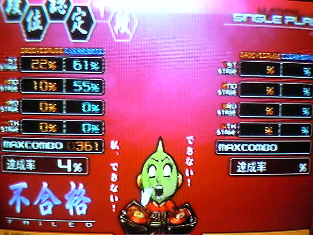 ファンタジーは実写でやるもんじゃねーだろ。 ……って意見な私は世間とはずれているのでしょうか。 その後、売店でマガジンを立ち読み。 「ネギま!」が夏休み編をやってた。 何故かコミケが描かれてた。 何故か狙撃者や忍者がロリ化しとった。 何故も何もなく、アーニャが良いボケっぷりだった。 はぁ~。 ハリーポッターとは比べもんにならないねっ! ……とか、本気で思ってしまうあたり。 かーさん。僕ってどこで人生踏み外したんだろーね? こんなこと親の目の前ではよー言いませんが(苦笑 さてさて、前座が長くなりましたが本題は続きで。 最近、IIDX歴代の段位認定なんかに挑戦しているわけですが、ほんとに上手くなってんのかね? なんて疑問がふつふつと湧きまして。 過去の自分と数値で比較してみたくなりました。 比較対象はこちら。 (06/12/24の日記より) ……クリスマスに何やってたんだ俺は(汗 それはともかく。 本日改めてやってみました結果はこちらっ! ……思ったより伸びてない orz つーか、半年前のAQUAさんにも追いついていませんよ。 なんかXepherができすぎですけど、いざ単曲HARDでやるとダメダメになる罠。なんでじゃいw それなりに地力はついてきてるんだろうけど、なかなか自覚はできないもんですね。 ~おまけ~ はいはい、レイジレイジ、っと。 せっかく⇒(A)とか抜けてもその先に夢も希望もありゃしねぇ! PR この記事にコメントする