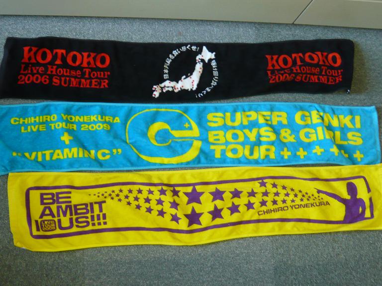 ト‐- 、 ____ ヽー--\ | ,..::''"´:::::::::::::::::`>-‐ 、‐-、,.. -‐ァ'ア <\ `7´:::::::::::::__:::::::〈 ( | / ./ .! __,,..ヽ‐::::'':"´:::::: ̄::::::::::::: ̄ ̄`"':::< / /_ ,.:'´::::::::::::::::::::::::___i´ ̄`ヽ''"´ ̄` 、::::`::く , '"´ / '、::::::::::::::::::;:: '"´ | ヽ. ヽ::::::::\__/ \::::::/ /ヽ ,ハ. |_,. イ ハ. ':,::::::::::ヽ. `7 /. メ、::::', ./:::::::レ | | ヽ;:::::::::\ ,' / /: ::::::::::', ./::::::::::::::: | ! ':,:::::::::::〉 | | / \,' | \/ | ,.| | _,,、ー'" ̄ `ヽ. / ,'| \ |/ .! ノ i、_r'" ̄ ::ヽ-', / / ` 、 |/ | ';:::::::::::::::::::::::| / / \ ヽ. |/ | 、 ヽ、:;_______;ノ / / | ヽ. ', / ,! >、 / | /!. __ ', | / / .|/`>-r<,.' ! /ア´ `ヽ| / , '´ / / /|./! |// '、ハ/ / , イ /_,. イ /r\.| / ,' \ | / .| // .| / |_]:| / .| \ ./\/ ∧ / / く´::::-[]‐::| /7 ./ ノ、 ↑想定外の出来事に、有頂天を通り越して茫然自失している緋彗さん(代理:某不良天人w) えぇと。何があったかといいますと。 昨日の米倉さんのライブ中、とある曲の前にMCがありまして、 『みんな覚えてるー? 去年も演った曲なんだけど。ほら、こんなポーズの……』 という下りがあって、手元に去年のライブのマフラータオルがあったので、頭上に掲げて「コレですよね、コレコレ~♪」みたいな感じで振り振りしてたら。 『そうそうそれそれ! 持ってる人いるね~!』 と、指をビシッと。一斉にこっちに注目する客。固まる私w いっやー。今回で7回目か8回目くらいの参加になるけど、一生忘れられないライブになりそう。ちょっとしたことなんだけどw 小さなハコでのライブは、ほんとに歌手と客との一体感が凄いです。 自分も一緒になってライブを作ってる感覚になるというと、ちょっと大げさかもだけど。 回数数えると、結構ベテランの域になるのかな~。結構若いお客さんも多いしね。 これからもずっと応援しようと改めて思ったのです。 ~ちょっと過去を思い出して、今までのライブグッズを掘り出してみた~ ◆ライブTシャツ 上に行くほど最近です。後1枚くらい実家にあったかも。 少しずつ、デザインが洗練されてきてる気がする。 左下2枚は、表こそワンポイントですが、裏に大きくプリントされてます。 (azure:裏にバスの絵、cheers!:10周年を大きく文字でプリント) ◆マフラータオル 最近のライブではなくてはならないものになってきたマフラータオル。 日常でも結構使えて便利です。 一番下が、日記にもあった昨年のタオル(BE AMBITIOUS!:右に人が指差したポーズ)。 真ん中が今年のもの。 一番上はおまけですw(3年前に粉っち達に拉致られたライブw) ◆リストバンドなど 一番左が自分が初参加のライブのときのかな? たしかjamの時。 真ん中は10周年のときのだったっけか。 そして右が今年のもの。毎年出ている、というわけではないのです。 上のマグカップは思わず買ってしまった。後悔はしていないw 他にも、ストラップなども少々。結構溜まっているものですね。