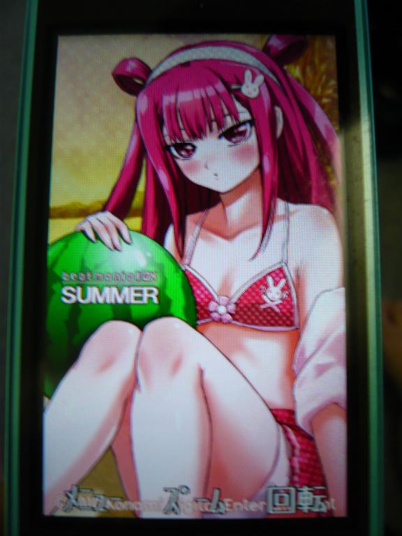 ・猫度 24/96=?(東方同人誌) ・泣けるアニソン(CD:米倉千尋) ・ムダヅモ無き改革 6巻 ・WORKING!! 9巻 ・東方三月精 2巻(以上、漫画単行本) 全体的に、発売されて少ししてから知って、あわてて買いに走ったり。 大分、アンテナの感度が落ちてるなー。 WORKING、9巻になっても伊波さんの可愛さが留まるところを知らな過ぎてヤバイ。 少しずつ話に進展が見えてきそうな気配があるけど、この漫画もそろそろ終わりに近付いているんだろか? さて、beatmania。 今週末は何を思い立ったか、行脚店舗数を7点ほど増やしたりしてました。 現在、41店舗。 先日京都に行ったときに、思うように回れなかったのが悔やまれるー。 来週は名古屋の北あたりを攻めてみるか。 50店舗まわれば、DELLARポイント付与の頭打ちなので、そこまでは頑張るか。 と、上に少しDELLARポイントの話題が出たので、現在の解禁状況を。 ANOTHER譜面:全解禁 HYPER譜面:あとP†Pだけ NORMAL譜面:手つかず OTHERのやつ:WORLDツアー分(30000ポイント分)手つかず 300回以上プレイしてるのに、この解禁状況って、しょーじき鬼畜だろ!(怒 平日なかなかプレイできない分、その他のボーナスは極力狙ってるのになぁ。 ※その他のボーナス一例 ・DJポイント 1000刻みで到達ごと(10000到達済み) ・行脚店舗数 5店刻みで到達ごと(現在41店舗) ・EXPERTコース 5コース刻みで到達ごと(50コース到達済み) ・プレイ譜面数 100刻みで到達ごと(現在800譜面弱) ・プレイ回数 100回刻みで到達ごと(現在300回ちょっと) ・STORYモード 各レベル全曲クリアごと(現在4レベル制覇) ・LEAGUEモード 5レベル刻みで到達ごと(現在Bリーグに昇格したばかり) こんだけやって、HYPER譜面も解禁できてないとかww 本気で今回廃人仕様ですね……。jubeatが可愛く見えるわ。 てか、プレイ回数が直結する解禁条件なら、せいぜい最大で100回くらいが妥当ではないか。 jubeatも、ripplesのときはTotal Best Scoreランクと、色んな称号があったおかげで、個人的にはモチベーションが保てたけど。 それでも200回はつらかった……。 次回の解禁形態はどうなることやら……。 偶数バージョンと奇数バージョンの流れを見るに、次回は期待してもいいのか?? 最後に、以前コメントにあった 『(STORYモード全曲制覇特典の)LEVEL4 3章の携帯待受けは萌えますよー』 ……の画像を、本日ようやく手に入れましたので、これを紹介して〆とさせていただきます。 (注:設定上このキャラは、IIDXキャラの中でも年上の部類。 のはず) あ、だったら問題ないか(ぇ |